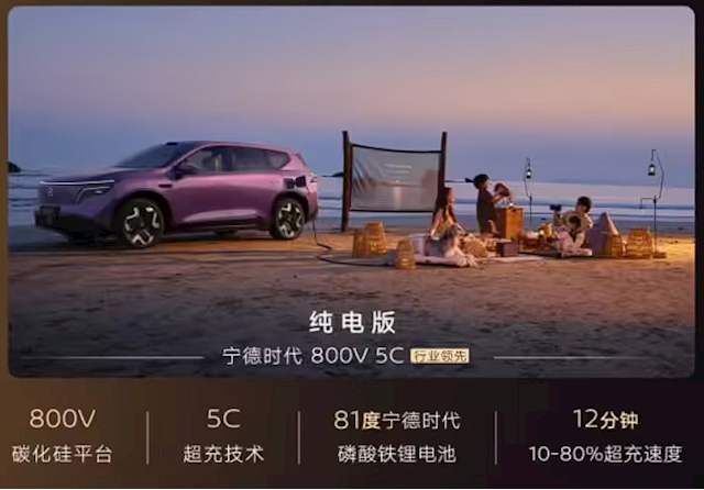 纯电版提供215千瓦和250千瓦两种能源版块车型,配81kWh宁德时期磷酸铁锂电板,且基于800V架构打造,该车也成为首款搭载800V 5C超充时间的外洋品牌新能源SUV,从10%充电至80%仅需12分钟。