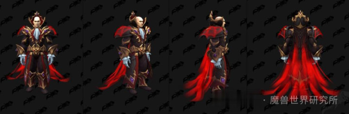 临了这套套装与温西尔盟约的套装:收割者的宫廷降服作风一样,但在肩部和披风处加入了精通标红色发光殊效。