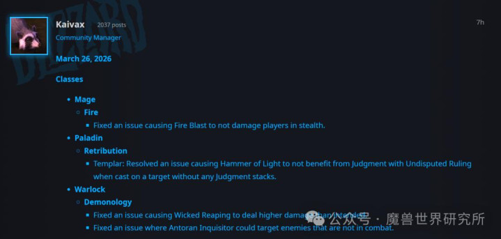 圣殿骑士:修正了当筹划打算身上莫得任何审判层数时,对筹划打算施放的圣光之锤无法从公允裁定禀赋中的审判赢得增益的问题。