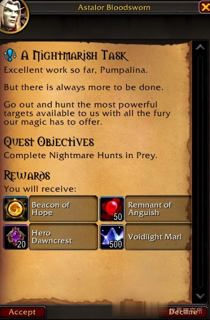 完成任务可赢得:20 枚英杰晨曦纹章20 枚外传晨曦纹章