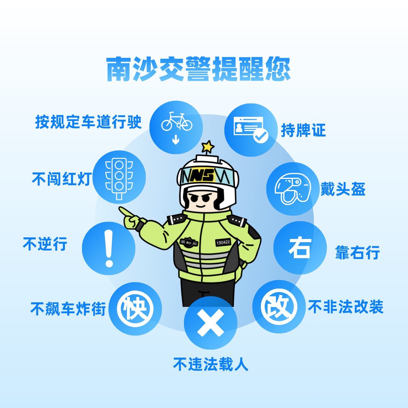 南沙交管部门领导,骑乘电动自行车请记起“早点走,靠右行,迟缓开”的安全理念,共同防守说念路治安。