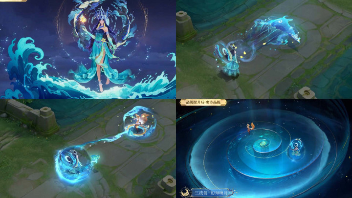 二手段的变化也异常大,可以看到袭击的时候有海水进行袭击,后果亦然异常可以的。天然了,最勤恳的如故三手段殊效,可以说是所有海月皮肤内部最独到的一款,因为内部天然是一个海水元素,然则展现出了一种 3D 视觉感,比较海月其他皮肤的大招殊效,这款皮肤的大招视觉后果全皆是最独到的。