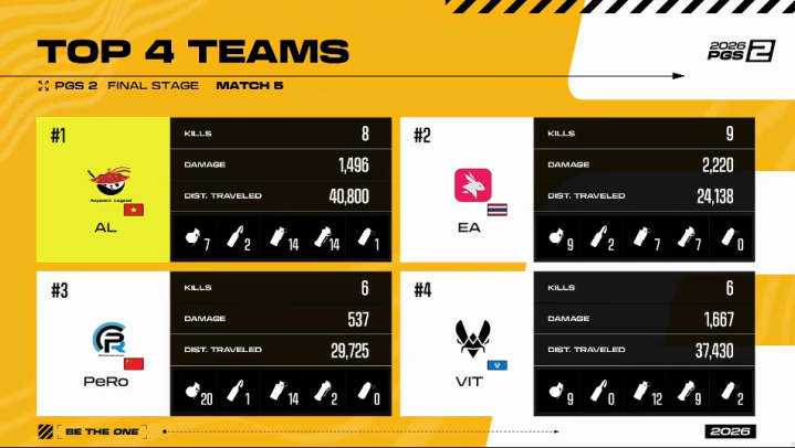 阶段6:NAVI被淘汰,17独狼被清,TM碰到围攻被带走,FCE也被平分,MITH被带走,PG电子(PocketGames)PERO团灭TE