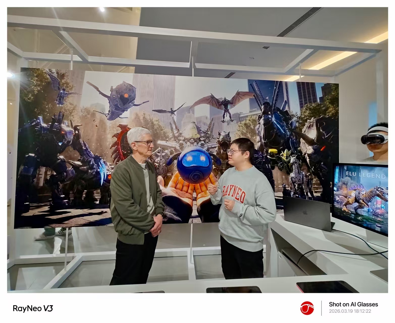 3月19日,苹果在北京举行了线卑鄙戏成就者展示沙龙行径,苹果CEO库克现身,与中国成就者靠近面聊游戏。值得一提的是,来自深圳的消耗级AR品牌雷鸟翻新(RayNeo)携空间斟酌游戏《数码纪元:Elu 听说》亮相并与库克专题对话,共议空间斟酌改日。