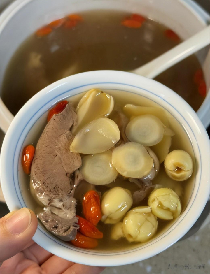 4. 加入莲子、百合,转小火慢炖1小时。