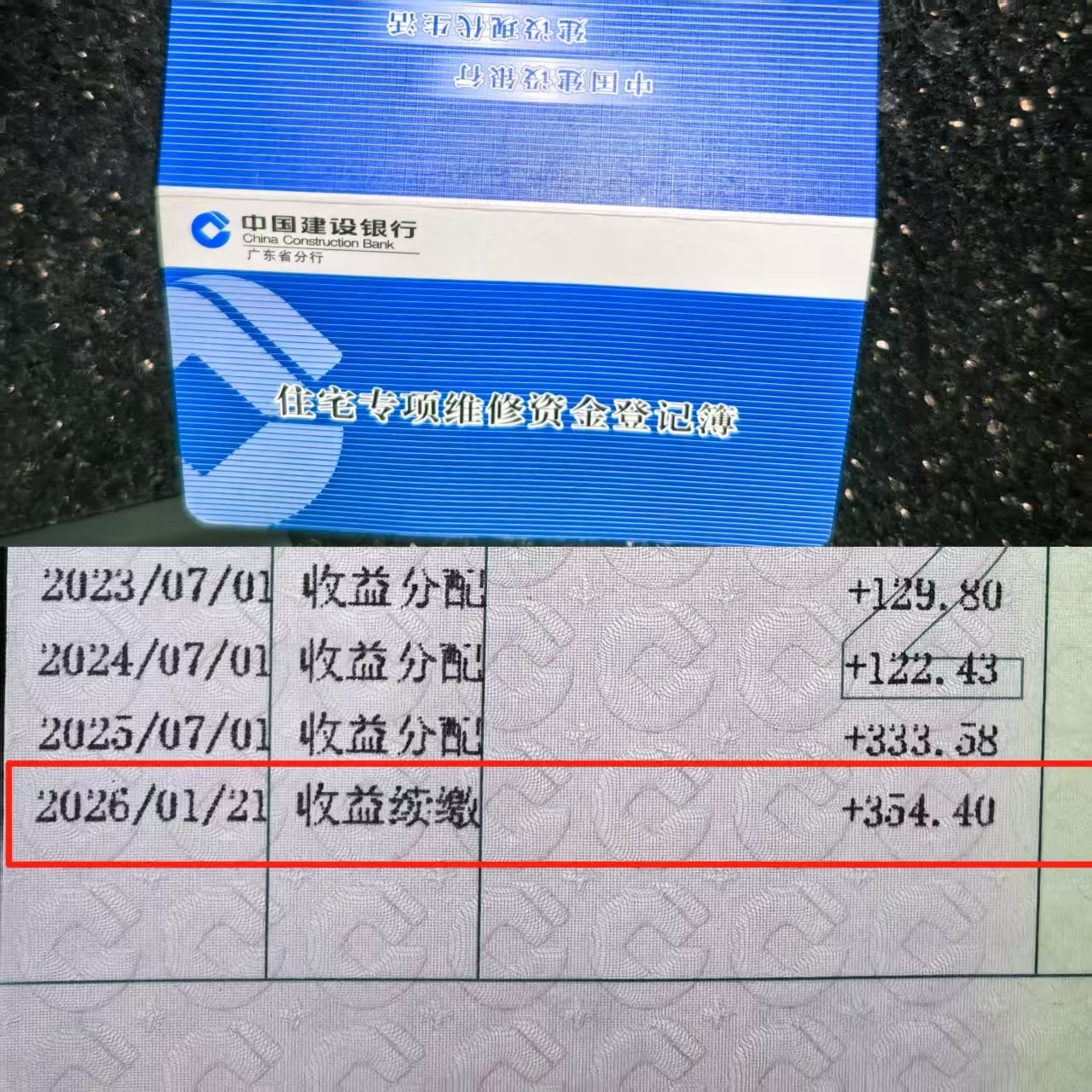 众人收益告捷入账业主李先生的物业维修基金账户